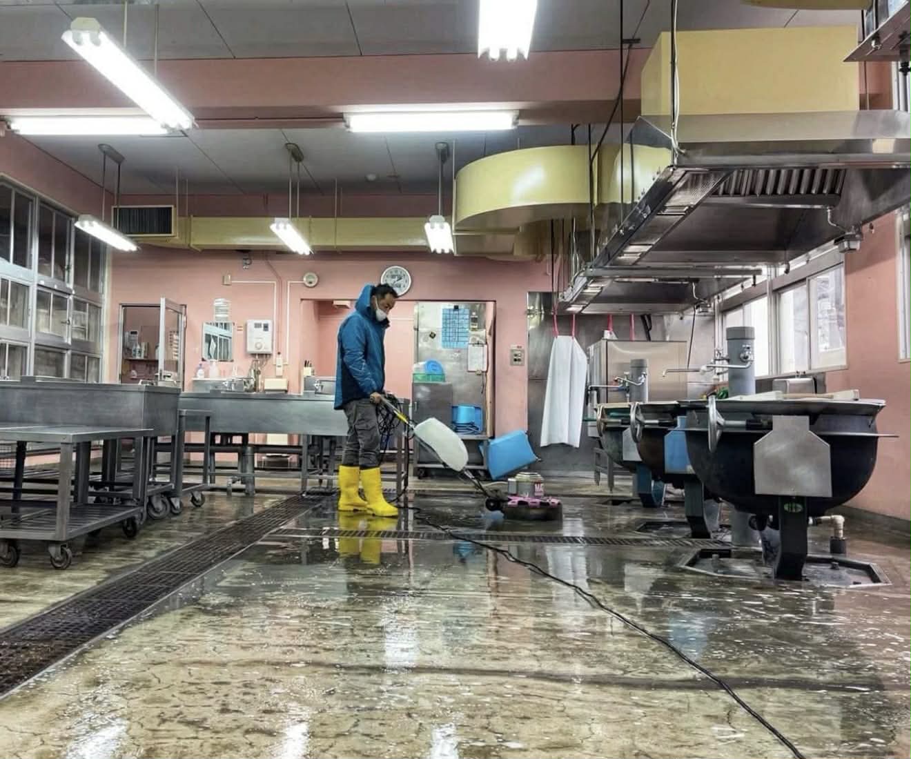 給食室の床は、日常的に