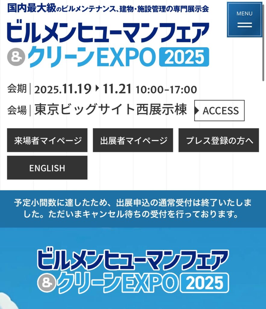 建物管理・清掃・設備の最新技術が一堂に集まる「ビルメンヒューマンフェア&クリーンEXPO2025」です。