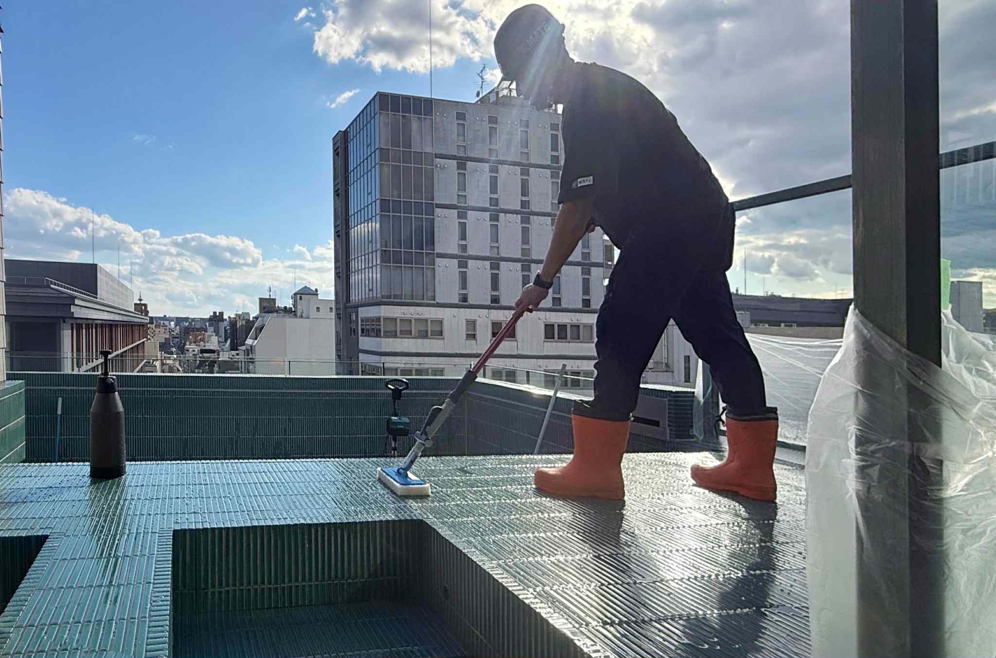 施工場所-客室内屋上プール床面(サウナ併設)