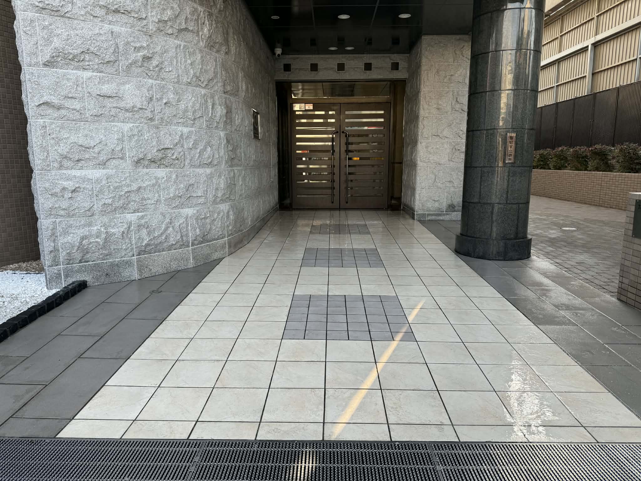 課題:美観は保たれているが、雨天時に外部から水分が持ち込まれると滑りやすい