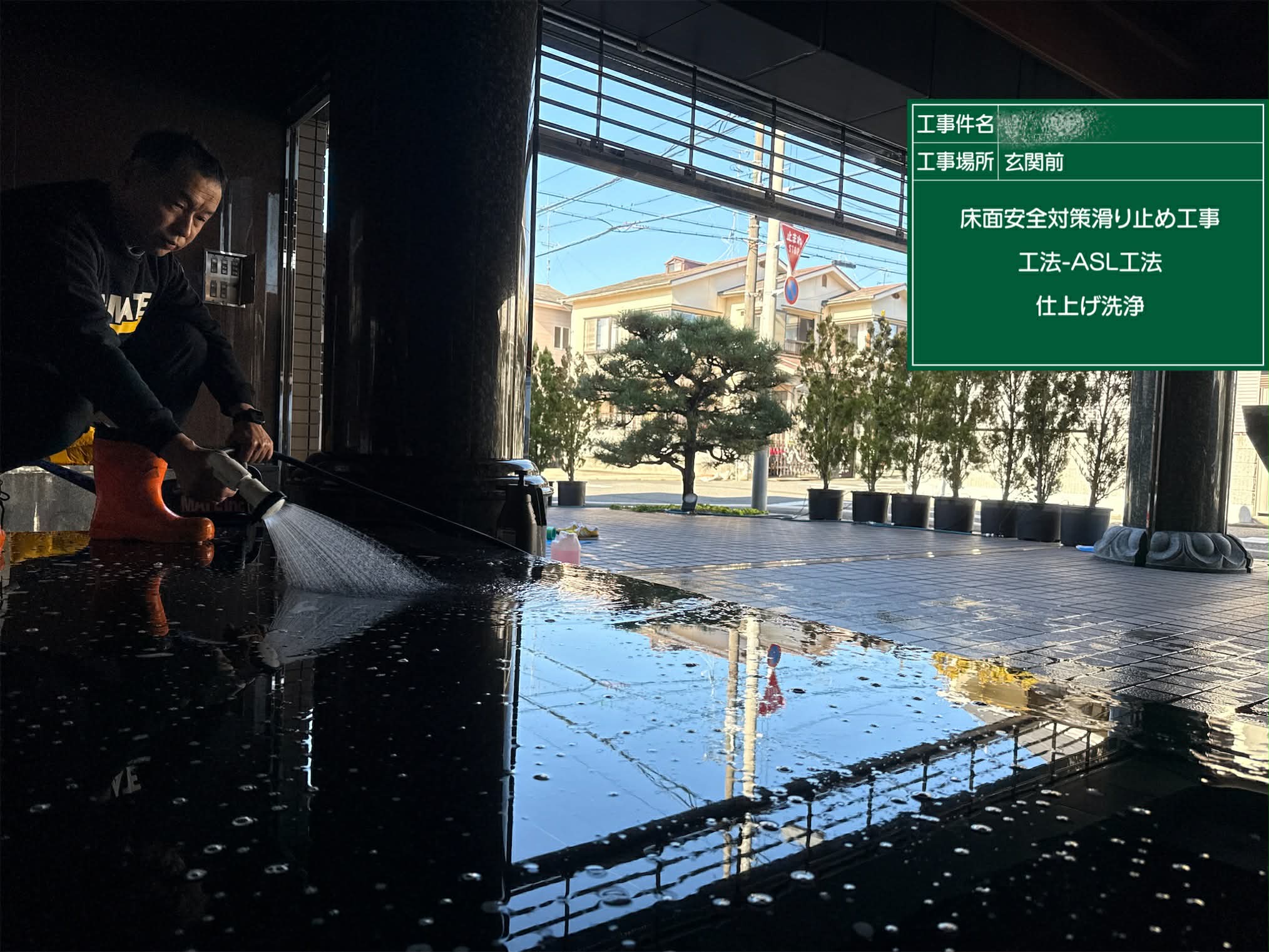 以前から、雨天時に玄関床が滑りやすく、来訪者や利用者の足元に不安を感じる場面があったとのことで、問い合わせをいただきました。